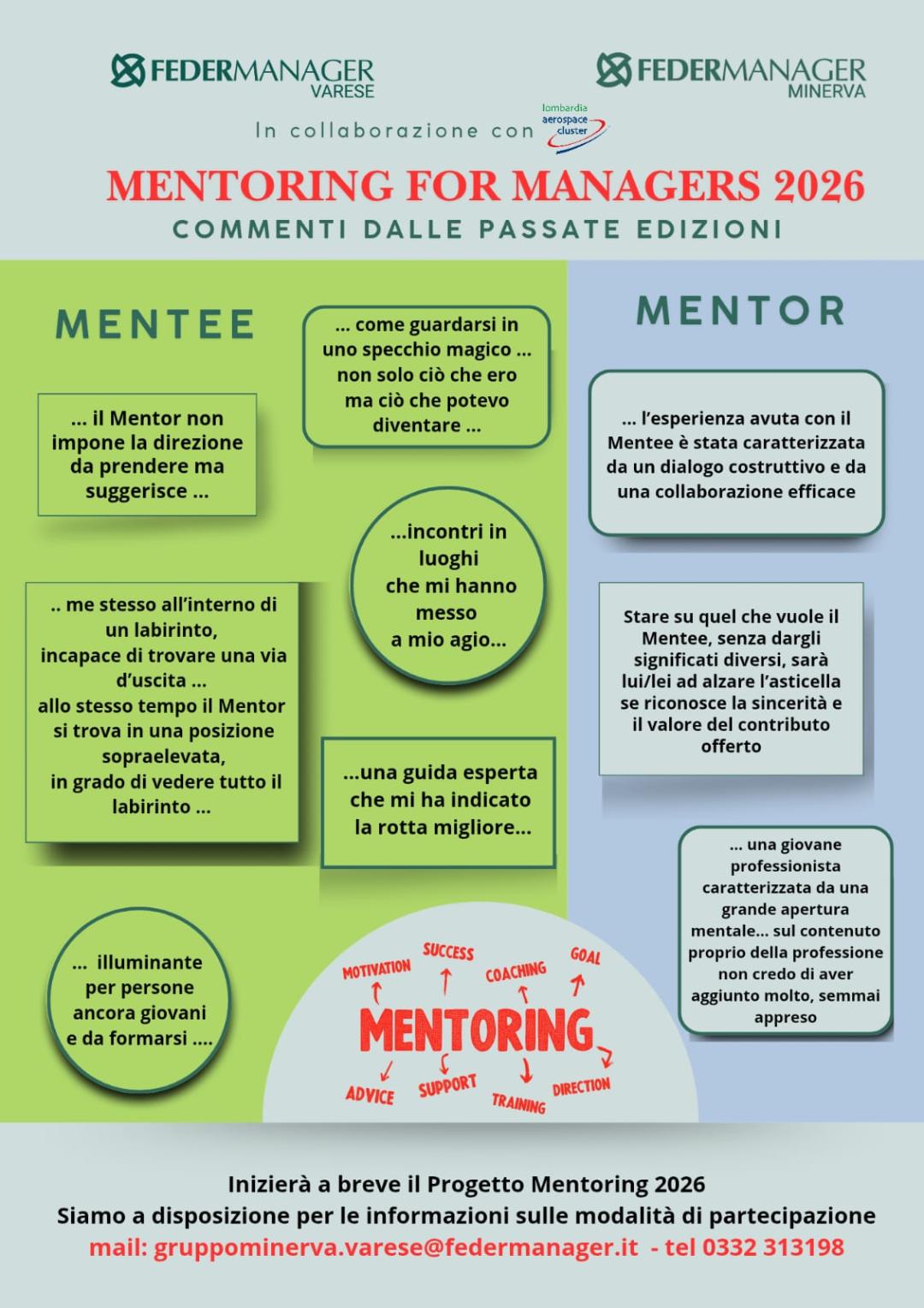 Desideriamo ricordare che il nostro Cluster ha sottoscritto con il Gruppo Minerva di Federmanager Varese un MoA (Memorandum of Agreement) relativo al Progetto Mentoring in ambito Sostenibilità. L’obiettivo è mettere a disposizione delle imprese socie del LAC uno strumento concreto sui temi di “Diversity, Inclusion & Equity”, aspetto di fondamentale importanza per quanto riguarda l’Assesment di EcoVadis (su cui si concentra in larga parte il Progetto Sostenibilità del Cluster).